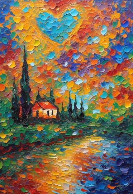 Il quadro di alta qualità "Doodle - Casa Colorata" è il risultato del lavoro di un'intelligenza artificiale basata su rete neurale. Il quadro che si è ottenuto viene stampato su tela pittorica e montata su telaio sandich autoportante.