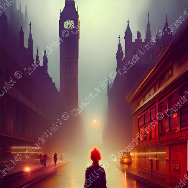 Il quadro di alta qualità "QuadroUnico - Verso la Città" è il risultato del lavoro di un'intelligenza artificiale basata su rete neruale. Il quadro che si è ottenuto viene stampato su tela pittorica e montata su telaio sandich autoportante.